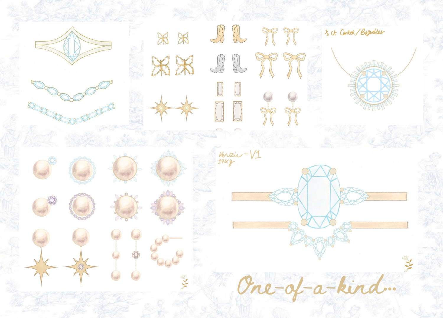Based on the meeting, Sadie Jo will hand render 3-4 jewelry designs that encapsulate the concept and vision you have in mind for your custom jewelry piece. At this stage in the process, any design can be altered / adjusted based on preference.